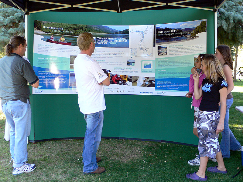 of Environment and CRIEMP Co-Chair) talks to visitors